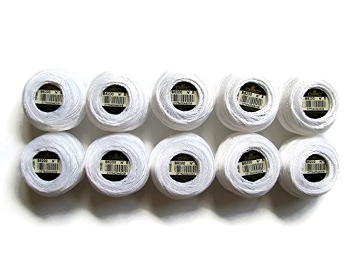 DMC Pearl Cotton Thread Ball, Size 8, 87yd, 10-Pack (Snow White-B5200)