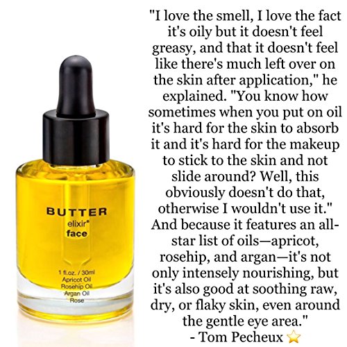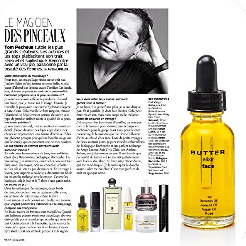 Often seen in the backstage setup of top Make up Artists and Gurus that are serious about beauty BUTTERelixir face oil is effective, ultralight and delicious. A perfectly balanced potion of "all the best oils" that instantly penetrates and infuses your skin with moisture elasticity and glow. Use just a few drops morning and evening on clean skin or a lot for a glorious face massage.Feature