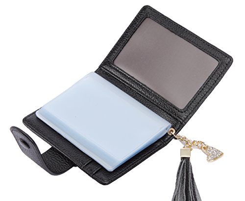 -. Binding : Apparel -. Brand : ZORESS -. Department : womens -. Feature : Cowhide Leather(exterior) + Microfiber Leather(interior). / Dimensions:4.33'' x 3.34'' x 0.98'' / 23 card holder; 1 ID window; / Easy to carry,the business card case is small and slim, light in weight, perfect for a night out tucked away almost invisibly in your pocket and it won't look like that you are bring a brick with all your necessary. / 100% Money Back Guarantee! If Anything Happens to Your Wallet Just Let US Know and We Will Replace it. -. PackageQuantity : 1 -. ProductGroup : Apparel -. ProductTypeName : ACCESSORY -. Size : Small -. Title : Women's Mini Credit Card Case Wallet with ID Window and Card Holder purse 9 Colors