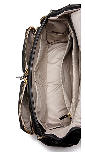 -. Feature : Double magnetic snap closure on flap into main compartment, Back compartment with magnetic snap closure, Leather top handle, Adjustable shoulder strap, 2 side zip pockets, 2 front zip pockets, Cellphone pocket behind left side zip pocket / Padded laptop compartment, Zip pocket on back wall, 2 open pockets on front wall, 2 side gusseted pockets, Pen loop, D-ring inside front zip compartment / 5.5x14x10