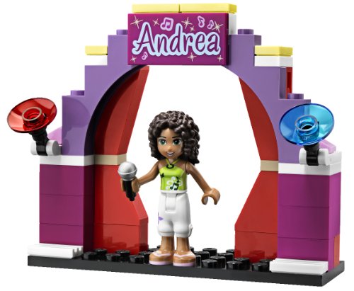 -. Feature : Enthält die Spielfigur Andrea / Besteht aus Bühne mit Vorhang und Schild, Lampen, Mikrofonständer, Klavier mit Bank, Ghettoblaster und Glas / Gib ein Klavierkonzert! / Verblüffe am Mikrofon die L.E.G.O Friends Freundinnen / Werde der größte Star in Heartlake City! / Hol deine L.E.G.O Friends Freundinnen zu dir auf die Bühne, um als Gruppe aufzutreten! / Die L.E.G.O Friends Steine lassen sich beliebig mit den L.E.G.O System Elementen kombinieren. / Sammle sämtliche L.E.G.O Friends Sets, um die Welt von L.E.G.O Friends zu erkunden und zu erleben! / Bei den L.E.G.O Spielfiguren handelt es sich um L.E.G.O Minifiguren, die speziell für die Welt von L.E.G.O Friends geschaffen wurden und unbegrenzte Frisur- und Modekombinationen ermöglichen. / Alter 5 bis 12. 87 Teile.