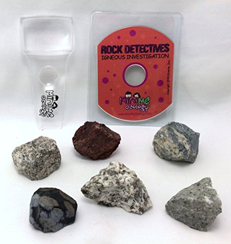 - Feature : 6 Large Igneous Rock Samples: granite, snowflake obsidian, andesite, scoria, volcanic breccia and pegmatite / Mini Me Geology custom Hand Lens with 3X and 6X magnifications / 30 page, full color eBook on CD that includes mineral information, sample identification activities, puzzles, coloring pages, experiments, an adventure story writing exercise for your geology detective, and activities including making a personal geologist's field notebook and your very own rock collection box / Perfect for rainy days, home school & kids who love to explore science with experiments / Designed by a Professional Geologist for kids ages 6-12