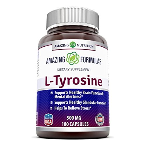 -. Binding : Health and Beauty -. Brand : Amazing Nutrition -. EAN : 0810180023528 -. Feature : L-TYROSINE BENEFITS A Potent Dose Of L-Tyrosine Supports Healthy Brain Function &Mental Alertness, Healthy Glandular Function It May Also Help To Relieve Stress And Anxiety / THE SIMPLE SUPPLEMENT SOLUTION Just 1 to 3 of our l tyrosine 500mg capsules gives you all the l tyrosine you need! / FREE OF CHEMICAL ADDITIVES We never add artificial colors, flavors, sweeteners or preservatives to our l tyrosine supplement. Our supplement is free of unnecessary fillers and binders / MADE IN THE USA Amazing nutrition l tyrosine 500 milligram capsules are manufactured in the U.S. at a GMP certified facility, ensuring that our tyrosine capsules are of the absolute best quality / FITS PERFECTLY WITH YOUR HEALTHY LIFESTYLE Our Tyrosine 500 mg capsules are free of sugar, starch, corn, soy, egg, lactose, gluten, wheat, yeast, fish and sodium to fit most diet plans and perefrences -. IsAdultProduct : 0 -. Label : Amazing Nutrition -. Manufacturer : Amazing Nutrition -. PackageQuantity : 1 -. ProductGroup : Health and Beauty -. ProductTypeName : HEALTH_PERSONAL_CARE -. Publisher : Amazing Nutrition -. Studio : Amazing Nutrition -. Title : Amazing Formulas L-Tyrosine 500mg 180 Capsules -. UPC : 810180023528