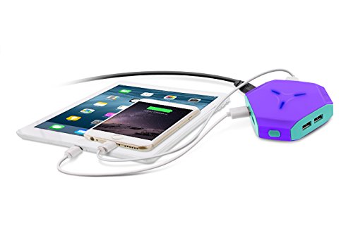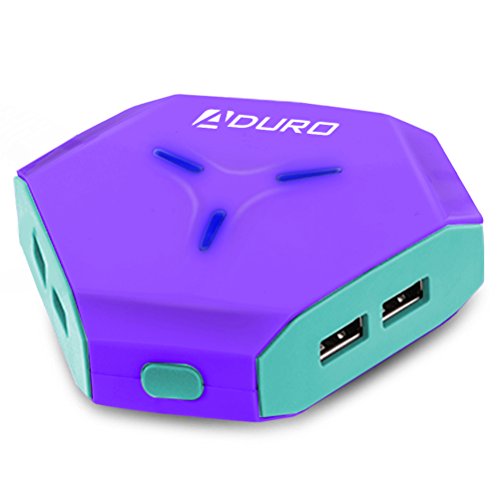 Aduro Power Hub 6 Port Charging Station For USB Enabled Devices - Universal Smartphones, Tablets, Speakers, Digital Cameras – Apple, Android, Samsung etc. w/ Smart Charge Tech (Purple/Turquoise)
