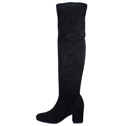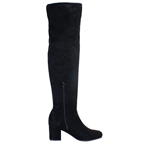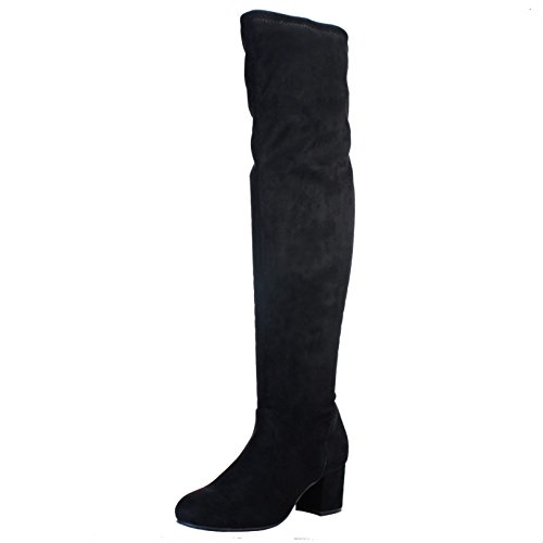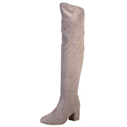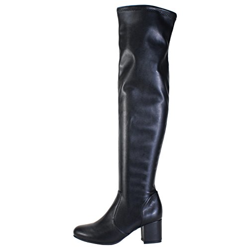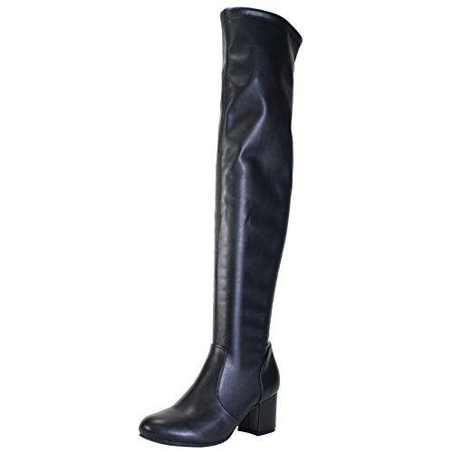 BAMBOO Women's Block Heel Over The Knee Stretch Boot