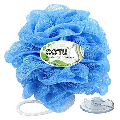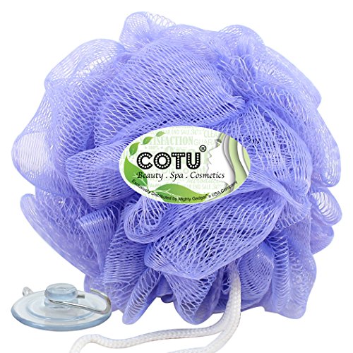 COTU ® Brand Mesh Pouf Bath Sponge works with any shower gels and soaps, and keep your skin healthier with daily sudsing and gentle exfoliating by using a classic mesh sponge. Just rub on your favorite soap or apply bath or shower gel for a luxurious, longer lasting lather. Pouf is approximately50 g in weight with a loop string & suction cups for hanging in the bathroom. Rinse thoroughly after use and hang to dry. Recommend replacement every 3-4 weeks.
