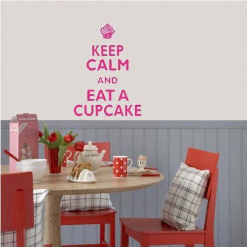 -. Binding : Kitchen -. Brand : PeelCo -. Color : Pink -. EAN : 0820103366502 -. Feature : Size of Sheet: 23.6" x 31.5" x 0.1" / Vinyl wall decals are great for indoor use but can also be used outside or on glass / Does not do any damage to surface / Can be used on any flat surface / Fun way to decorate and add fun to any room! -. Label : Peelco -. Manufacturer : Peelco -. Model : STY-340 -. MPN : 41772 -. PackageQuantity : 1 -. PartNumber : 41772 -. ProductGroup : Home -. ProductTypeName : HOME -. Publisher : Peelco -. Size : Large -. Studio : Peelco -. Title : PeelCo Keep Calm and Eat a Cupcake Vinyl Wall Art Decal Sticker for Home -. UPC : 820103366502 -. Warranty : Returns, exchanges, and refunds accepted for the first 30 days. But feel free to contact us with problems and we will try to figure out a solution. :)