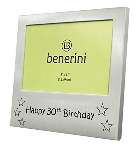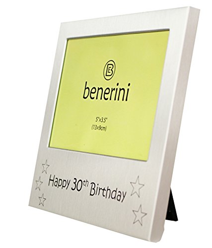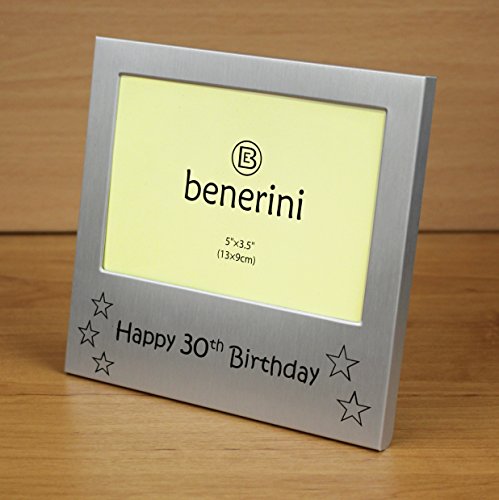 Happy 30th Birthday - Photo Frame Gift - Photo Size 5 x 3.5 Inches (13 x 9 cm) - Brushed Aluminum Satin Silver Color.
