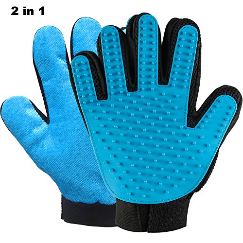 (Myuilor)/Pet Supplies/Grooming/DIRECT FROM USA/Pet Grooming Glove for Dog Cat Bathing Brush ,2-in-1 Pet Hair Remover Glove with Five Finger D...