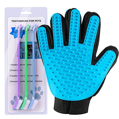 Product Description Pet Grooming Glove for Dog Cat Bathing Brush ,2-in-1 Pet Hair Remover Glove with Five Finger Design Shedding Gloves ,High Quality Massage Comb for Pet and Horse With 3 Pack Top Soft Pet Toothbrushes - 9 inch Long Handle for Easy Brushing? 0