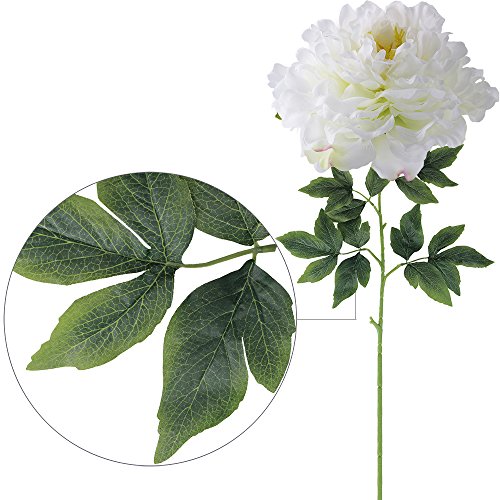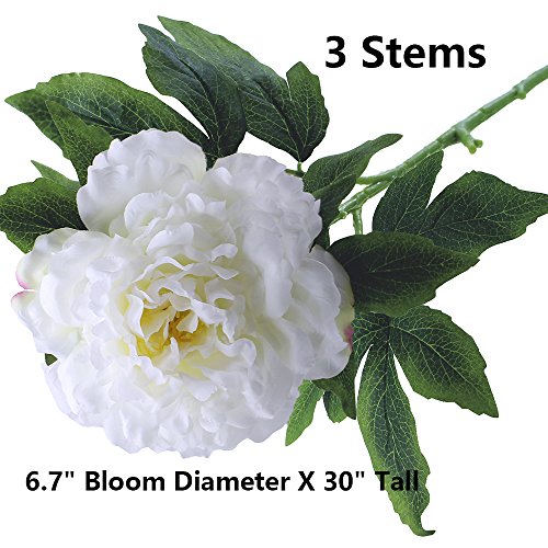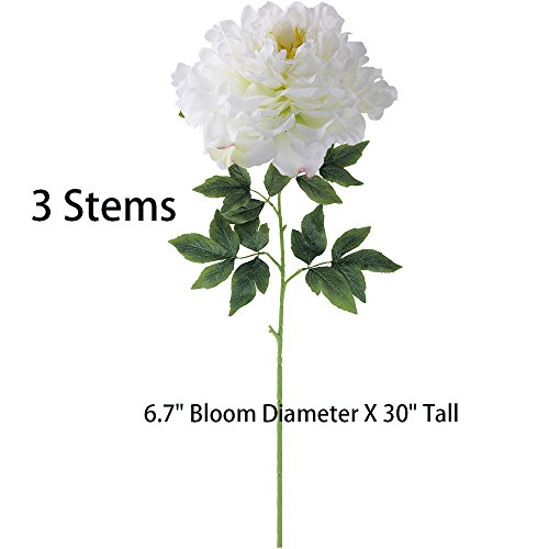 Supla 3 Big Stems Real Touch Silk Large Peony Flower Stems in White 6.7" Bloom Diameter X 30" TALL Flower Headpiece Wedding Décor Wedding Bouquet Floral Arrangement