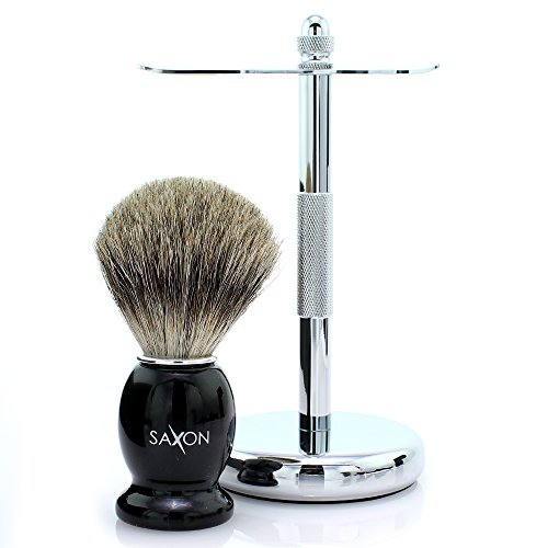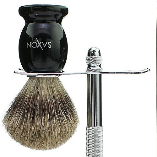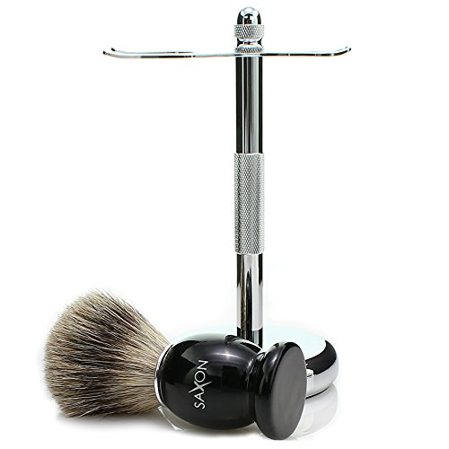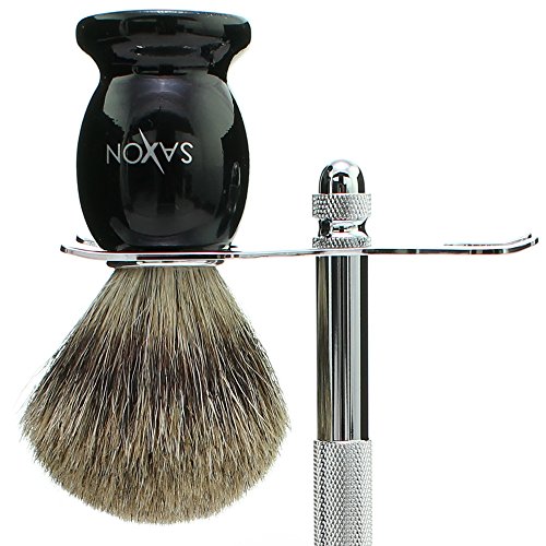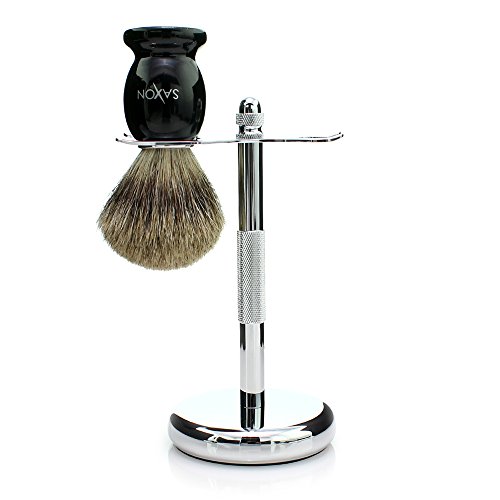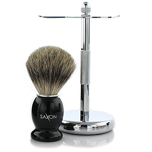 Saxon 100% Real Badger Hair Brush and Chrome Razor Stand Shaving Set For the Best Shave and Smooth Application of Shaving Cream Like an Old...