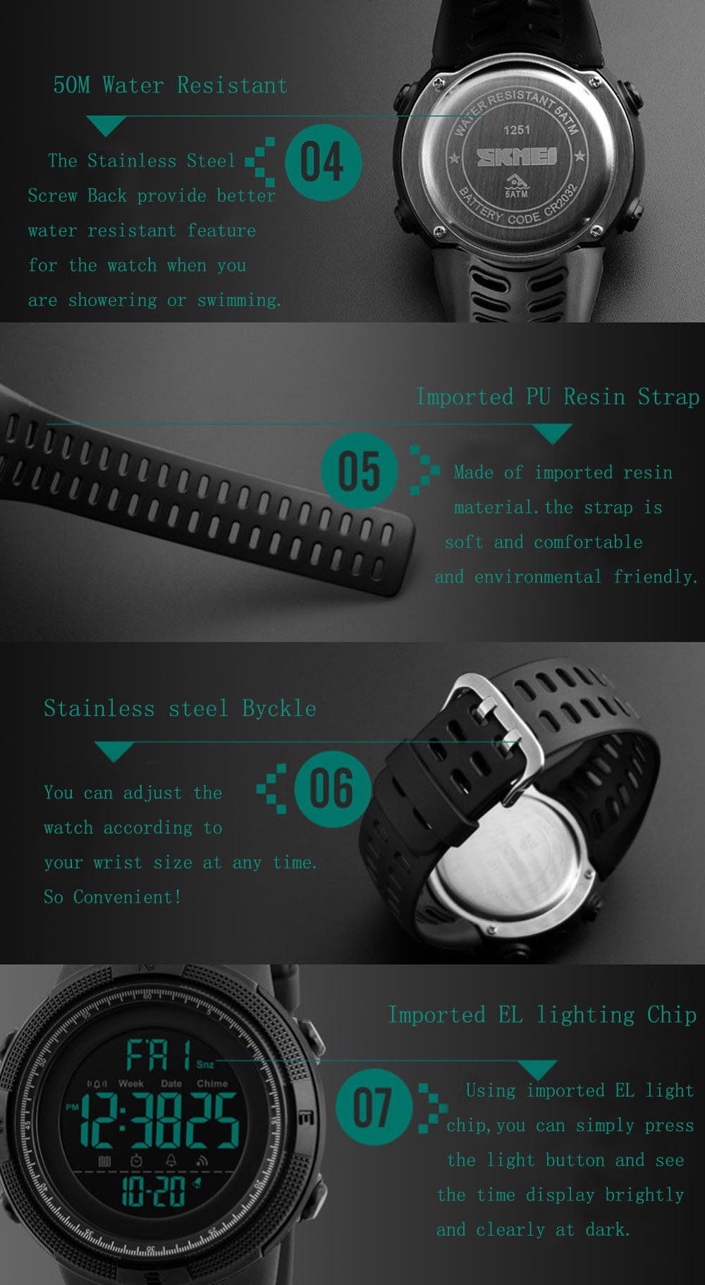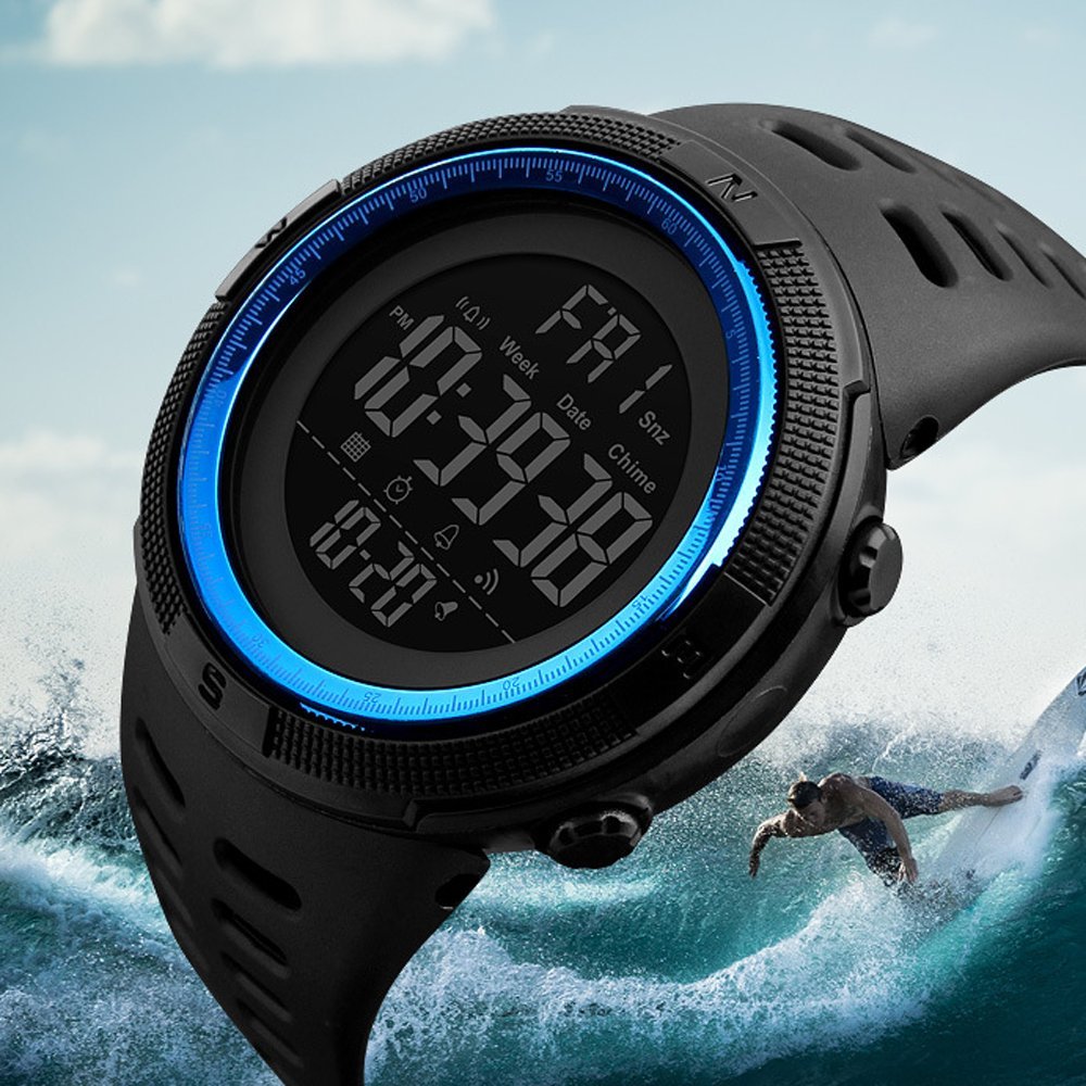 Waterproof watches Men's digital display Sports watch led watch Double time countdown Alarm and other features 5 ATM waterproof