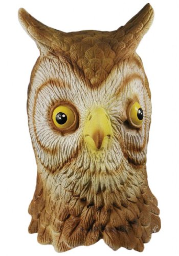 -. Binding : Toy -. Brand : Off the Wall Toys -. Color : Brown, Yellow, White -. Department : mens -. Feature : We've discovered yet another universal truth a person wearing a Owl Head Mask looks downright disturbing. / But don't take our word for it, wear this latex mask your next social function and watch as people scramble to avoid you! / Fits most adult heads. / How do you see? Through the Owl's Below the eye bore. / Made exclusively for Off the Wall Toys. Bagged with illustrated Off the Walls tag. To ensure it's the real deal please look for the Off the Wall Toys label. -. IsAdultProduct : 0 -. Label : Off the Wall Toys -. Manufacturer : Off the Wall Toys -. MPN : OWL-MASK -. PartNumber : OWL-MASK -. ProductGroup : Toy -. ProductTypeName : TOYS_AND_GAMES -. Publisher : Off the Wall Toys -. Size : One SIze Fits Most -. Studio : Off the Wall Toys -. Title : Creepy Owl Head Latex Mask