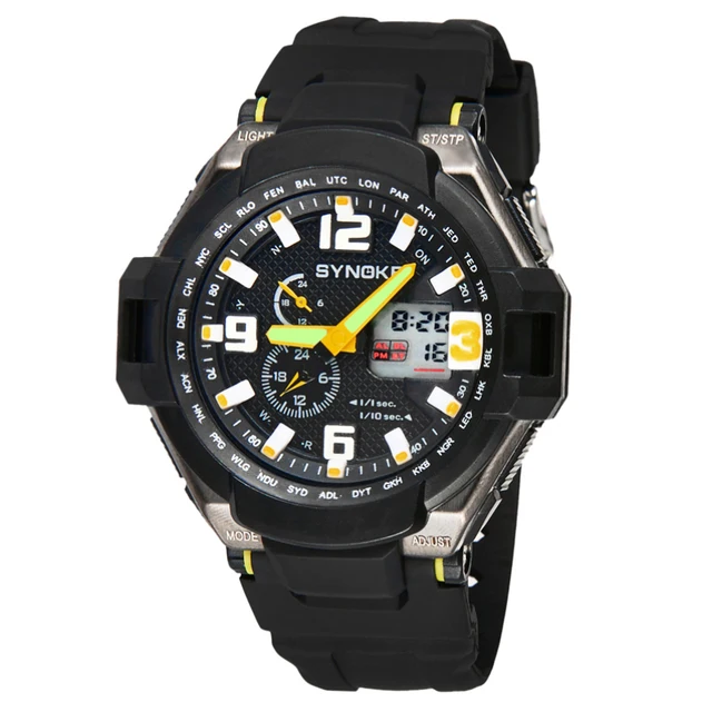 화려한 남성 시계 2016 멀티 기능 다이빙 방수 더블 디지털 석영 LED 스포츠 군사 알람 시계