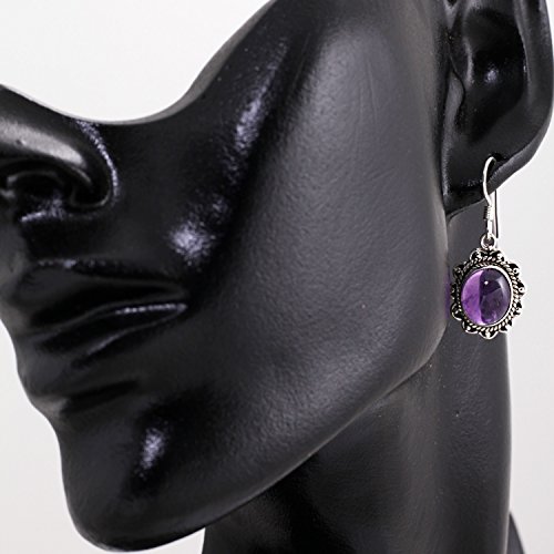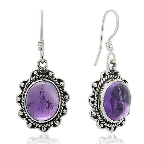 Title : 925 Oxidized Sterling Silver Amethyst Gemstone Oval Rope Edge Vintage Dangle Earrings 1.4"