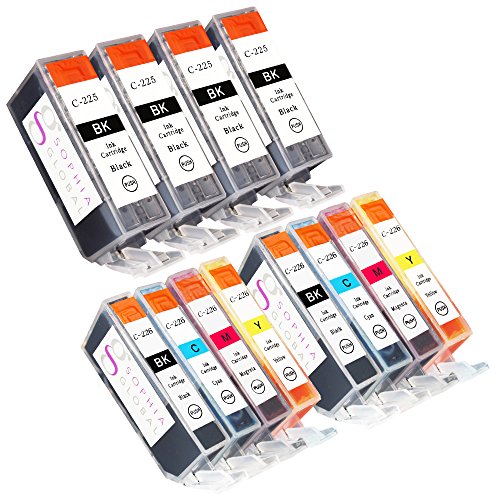 Sophia Global Compatible Ink Cartridge Replacement Set for Canon PGI-225 CLI-226 (Pack of 12: 4 PGI-225 Large Black, 2 CLI-226 Small Black, 2 Cyan, 2 Magenta, 2 Yellow)