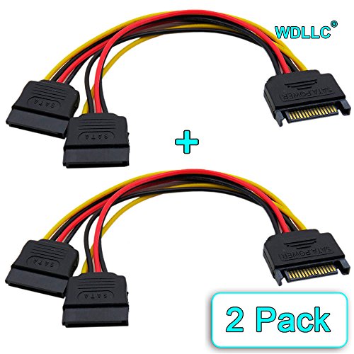 SATA ATA Power Y Splitter Cable Adapter 6-Inch M/F 15 Pin (2 Pack) - WDLLC
