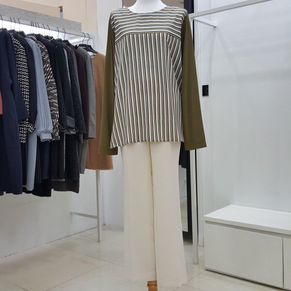 스트라이프 배색 블라우스캐주얼한 라운드넥 스트라이프 티셔츠 블라우스 입니다.베이직하게 단품이나 아우터 이너로 입기 좋의 상의입니다.화이트 컬러 배색이 들어간 스트라이프로 다양한 하의와 코디하기 쉬운 스타일입니다.깔끔한 디자인으로 데일리하게 스타일링하여 활용도 높은 상품입니다.총기장 27인치