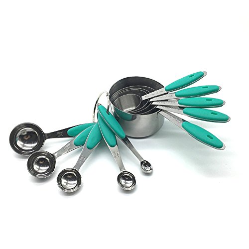 Rust Proof Stainless Steel Measuring Cups & Spoons Set, 10 Piece Collapsible Set, with Silicone Handles for Easy Grip, Perfect for Measuring Dry Materials, Blunt-Edged Spoons