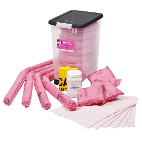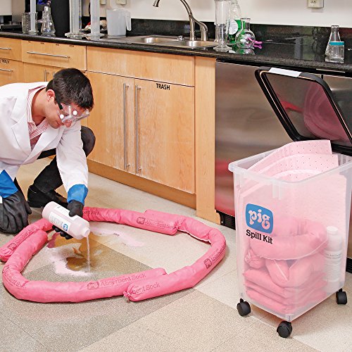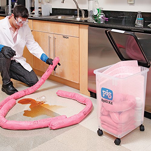 -. Binding : Misc. -. Brand : New Pig Corporation -. Feature : Durable polypropylene container with snap-tight lid protects absorbents from dirt and moisture / Equipped with 1-1/2-inches casters for easy rolling over smooth surfaces / Contains Pig hazmat absorbents to soak up acids, bases or other corrosive liquids / Ampho-mag neutralizer instantly changes color to help you safely respond: blue for bases, red for acids and yellow/green when neutralized / Prepacked container provides easy access to contents -. Label : New Pig Corporation -. Manufacturer : New Pig Corporation -. Model : KIT395 -. MPN : KIT395 -. NumberOfItems : 1 -. PackageQuantity : 1 -. PartNumber : KIT395 -. ProductGroup : BISS -. ProductTypeName : LAB_SUPPLY -. Publisher : New Pig Corporation -. ReleaseDate : 2016-06-10 -. Studio : New Pig Corporation -. Title : New Pig KIT395 23 piece HazMat Spill Kit in See-Thru Container, 8 Gallon Absorbency