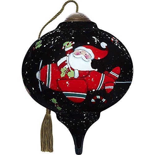 Precious Moments, Ne'Qwa Art 7171144 Hand Painted Blown Glass Petite Marquis Shaped Santa Takes Flight Ornament, 3-inches