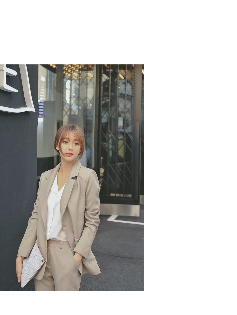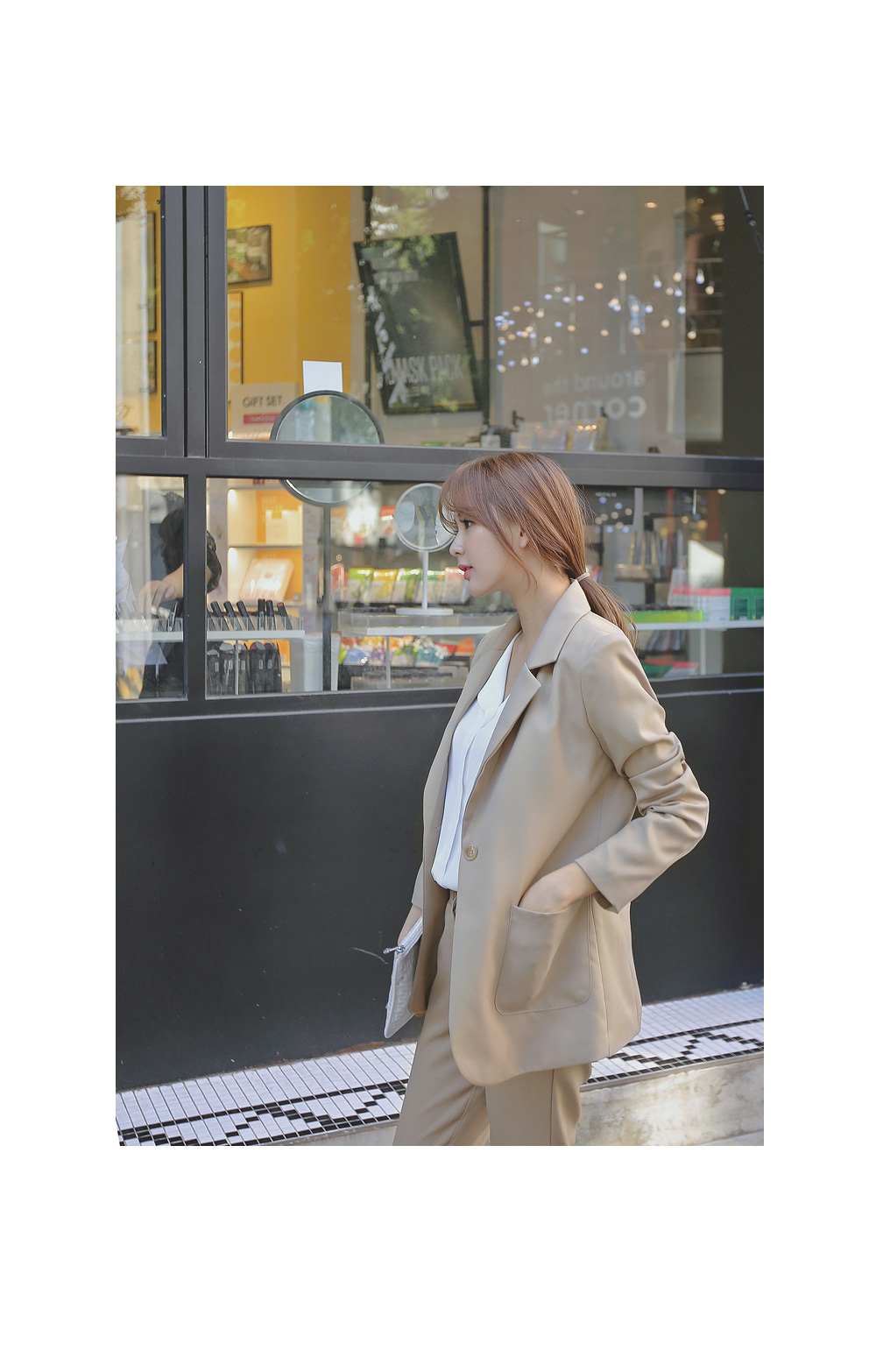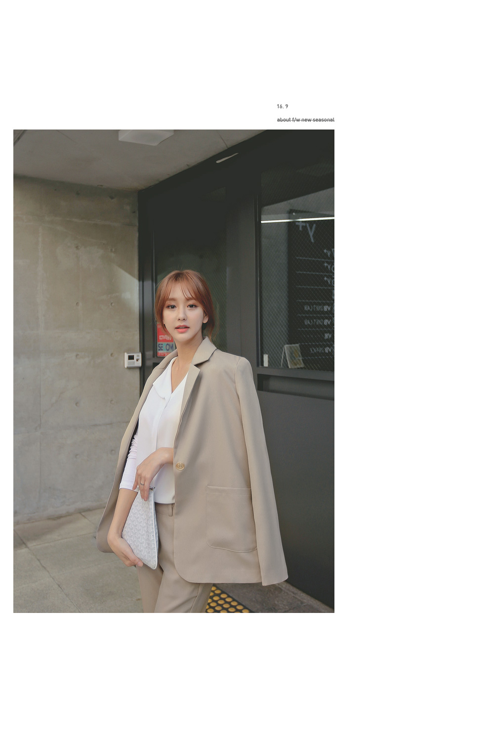 깔끔한 무드의 원버튼 자켓을 소개합니다.