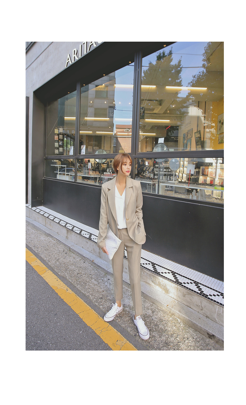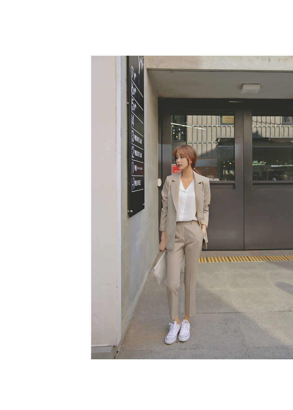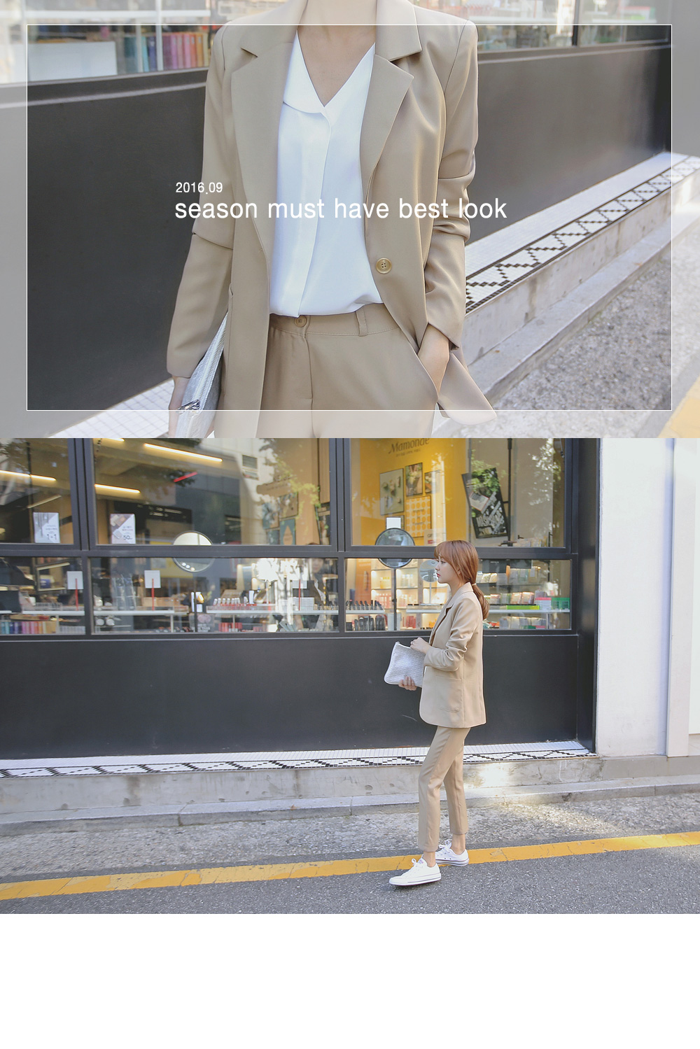 깔끔한 무드의 원버튼 자켓을 소개합니다.