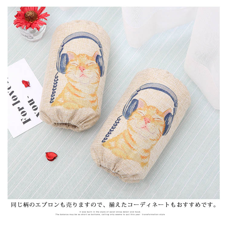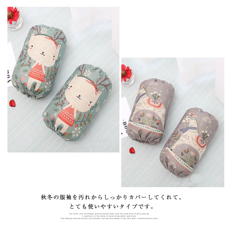 | 実用性・デザイン性を兼ね備えた袖下がーです。秋冬の服袖を汚れからしっかりカバーしてくれて、とても使いやすいタイプです。綿麻素材で生地に張りがあり、通気性もよくすっきりと着用できます。同じ柄のエプロンも売りますので、揃えたコーディネートもおすすめです。 | |