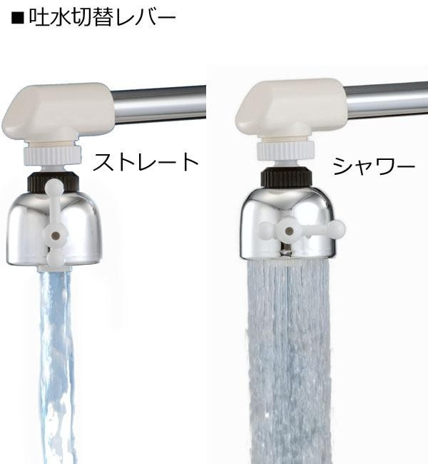 | ノズルの向きが360度変えられるので、洗い物やシンクのお掃除などにとても便利です。レバーを動かすだけでシャワーとストレートの切替えができます。シャワーで洗うと、短時間で広範囲に効率的に洗え節水効果も期待できます。お湯(50度以下)にもご使用になれます。パイプ外径16~19mmで先端のふくらんだ丸形タイプと泡沫器の付いたタイプでM22×1.25のオネジに取付けできます。 |