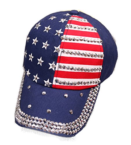FUNNY365 American Flag Patriotic Flag Baseball Cap Stars and Stripes,Diamante