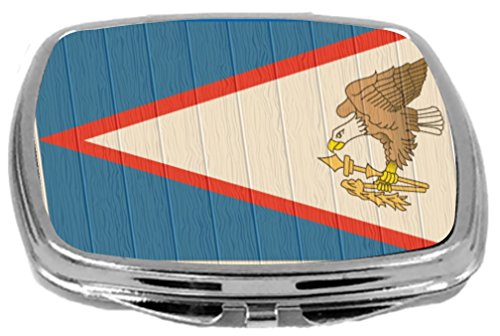 Rikki Knight Compact Mirror on Distressed Wood Design, American Samoa Flag, 3 Ounce