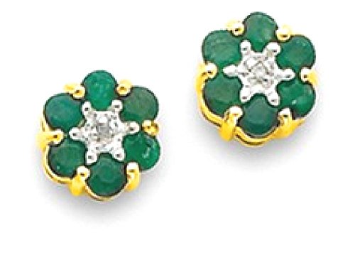 ICECARATS DESIGNER JEWELRY 14K YELLOW GOLD GREEN EMERALD DIAMOND POST STUD BALL BUTTON STUD EARRINGS