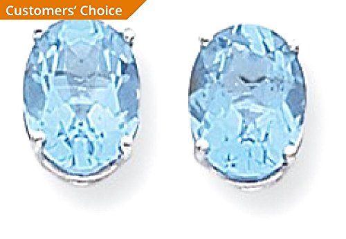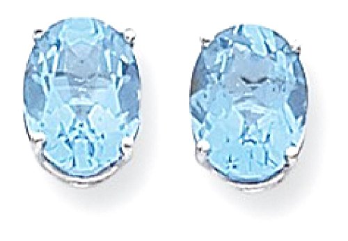 ICECARATS DESIGNER JEWELRY 14K WHITE GOLD 9X7MM OVAL BLUE TOPAZ POST STUD BALL BUTTON STUD EARRINGS