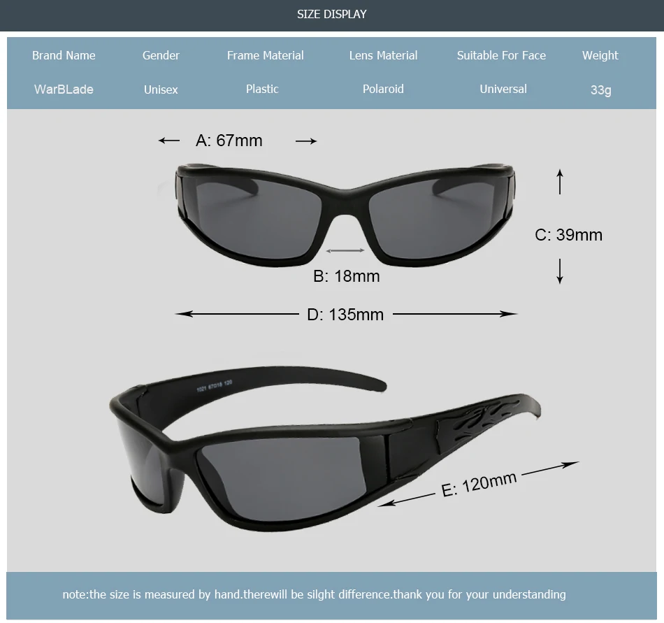 Lens Material: Polarize,100% UV 400 Protection against harmful UVA/UVB RAYS