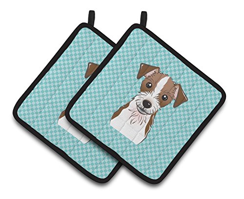 Caroline's Treasures Checkerboard Blue Jack Russell Terrier Pair of Pot Holders BB1140PTHD, 7.5HX7.5W, Multicolor