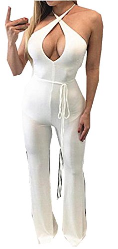 -. Title : Generic Womens Halter Backless Solid Belted Wide Leg Rompers