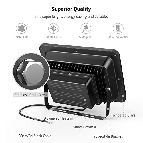 - Significant energy saving, high efficiency and Low power consumption: Cool White 200W 20,000 lumens output, super bright. 60% energy saving compare to sodium light, reduce the power cost greatly.