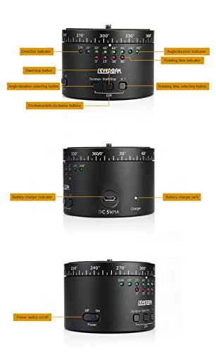 On board controls allow you to select pan rotation angle (15°, 30°, 45°, 60°, 90°, 180°, 360°), speed (5, 15, 30 or 60 minute rotations) and direction (clockwise and counter-clockwise).