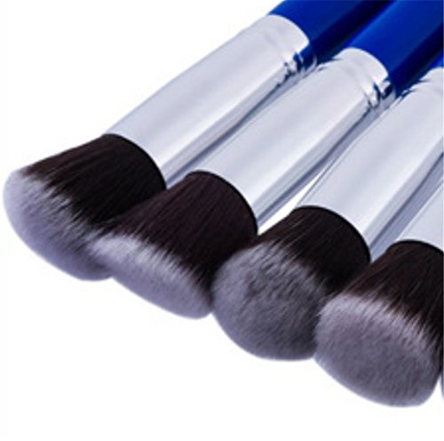 10 Pcs Makeup Brush Sets, Premium Synthetic Foundation Blending Blush Face Powder Concealers Eyeshadows Makeup Brush Kit (Silver Blue)