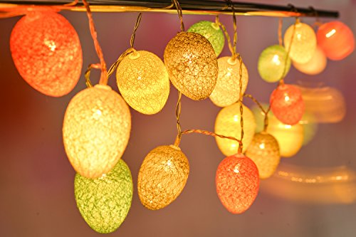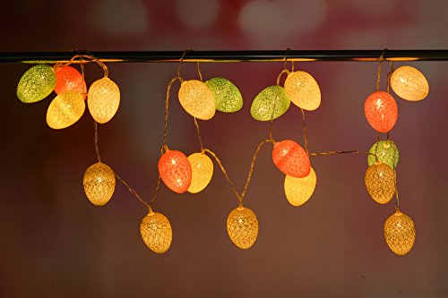 - BEAUTIFUL DECORATIVE LIGHTS FOR EASTER - Get your glitter on! A string of bright, multi-colored, egg-shaped lights you can put on your table, tree, or front door. It also can be used as a Colorful Egg Garland.