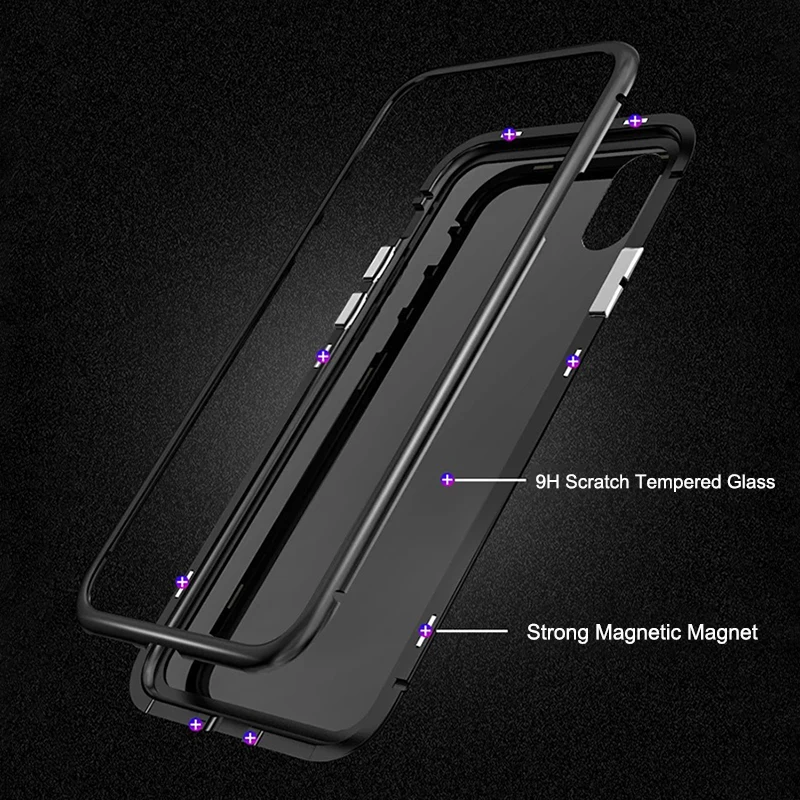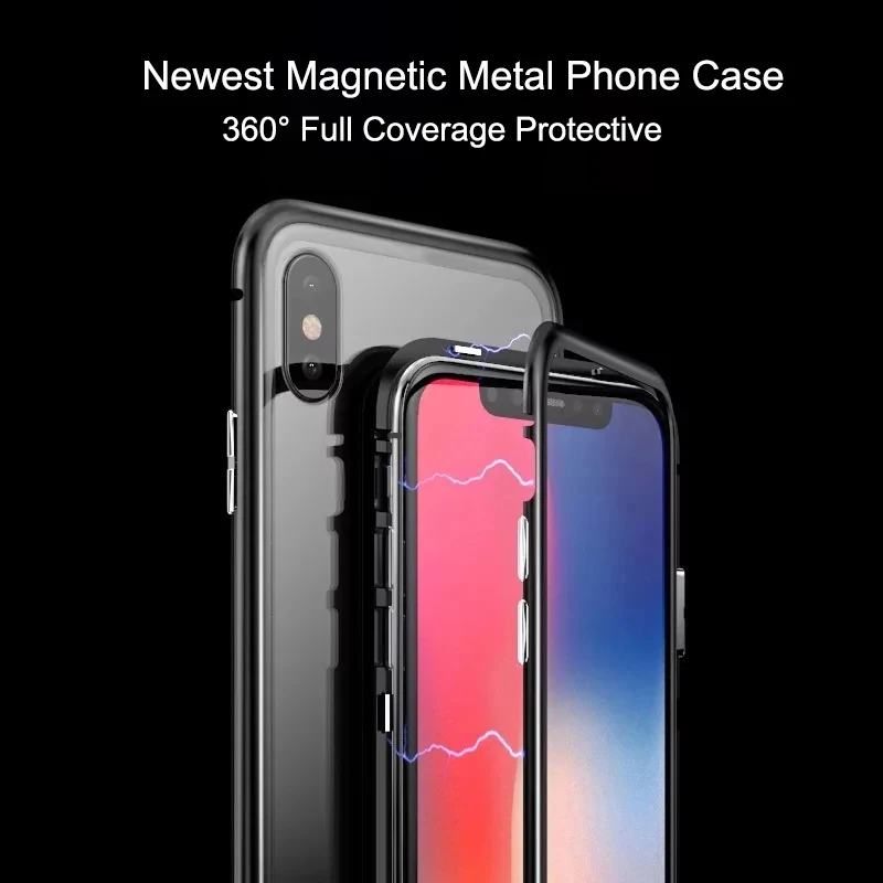 Model 1:Magnetic Adsorption Case For iPhone X Tempered Glass Case For iPhone X
