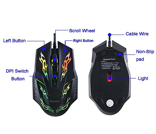 Sunreed I5 CENTROPHORUS-2400 DPI Gaming Mouse for PC, 4 Buttons, Weight Tuning Set,Gaming Mouse Mic for Gamer