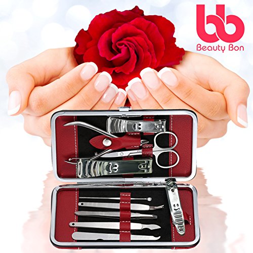 PORTABLE & LIGHTWEIGHT: The Beauty Bon®10 Piece Manicure Pedicure Kit comes with a portable synthetic leather case that is easily opened with a push of a button. It is also very lightweight so you can carry it with you in your bag everyday or pack it with you when you go traveling.