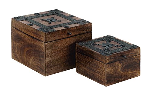 -. Title : Benzara Wood Metal Box with Cube-Shaped Design
