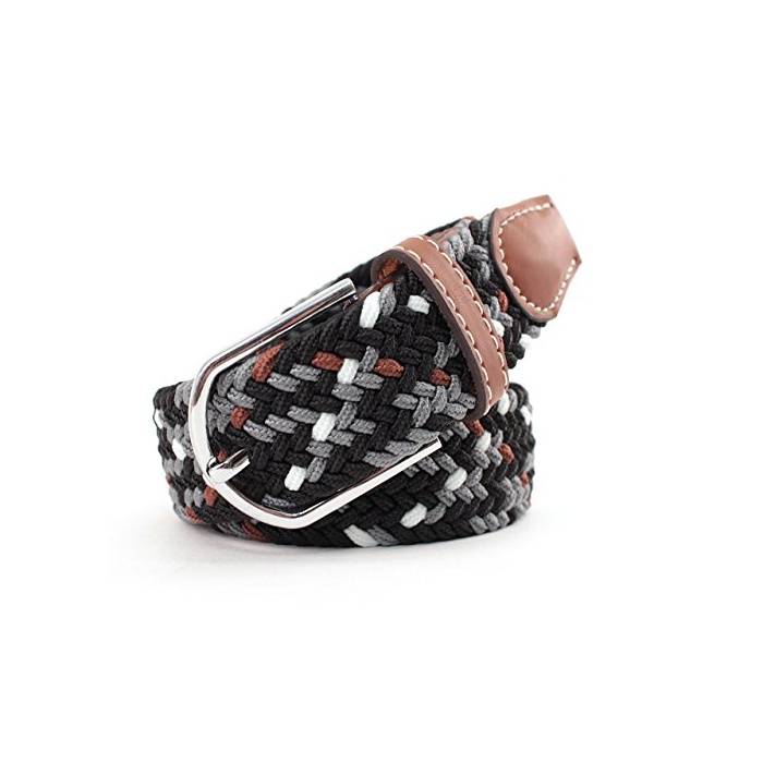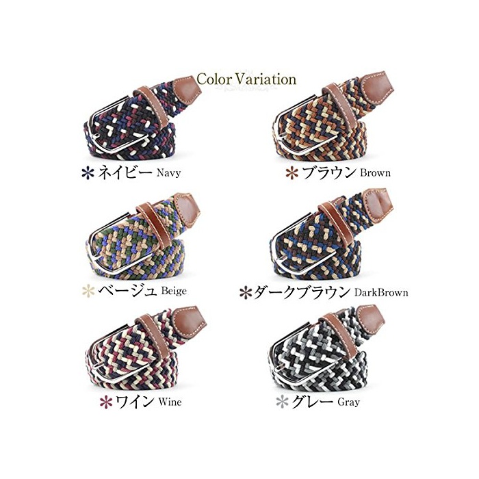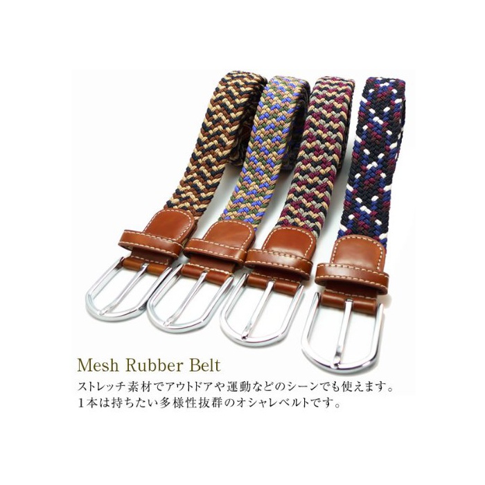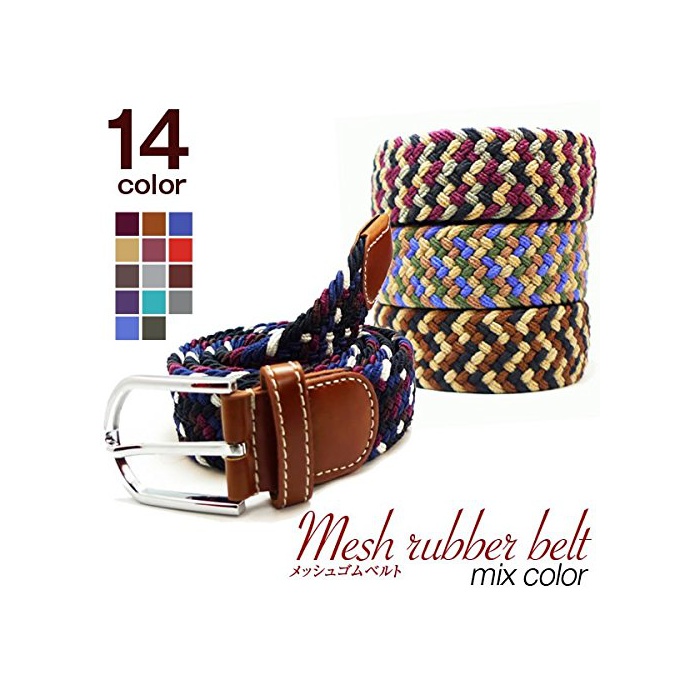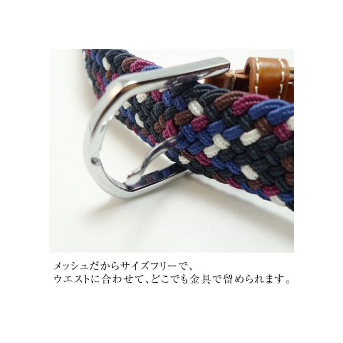 원본상품명: (ナチュラルベリ)Natural Berry スタイリッシュゴムベルト シルババックル メッシュゴムベルトミックスカラ 編みこみゴムベルト グレブラック