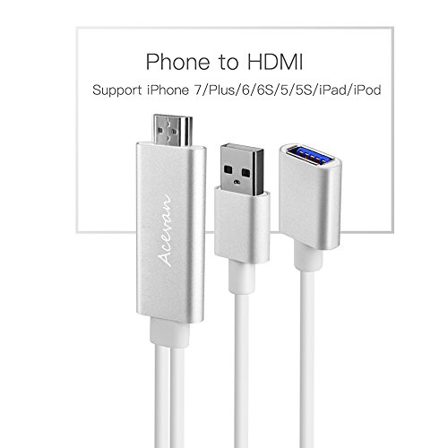 Acevan Lightning to HDMI Cable Adapter, USB Universal Lightning to HDMI 1080P HDTV Adapter Converter Cable for iPhone, iPad, iPod, Android Smartphone