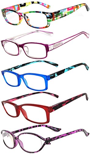 Readers 5 Pack of Elegant Womens Reading Glasses with Beautiful Patterns for Ladies Deluxe Spring Hinge Stylish Look 180 Day Guarantee +1.50