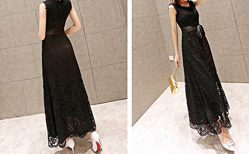 -. Title : POM(ポム)エレガント レディース レース ロング マキシ丈 マキシワンピ 総レース フリーサイズ 発表会 コンサート 黒 ブラック ノースリーブ ロングドレス