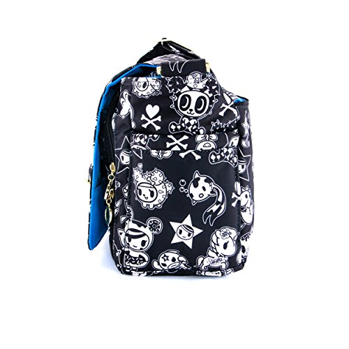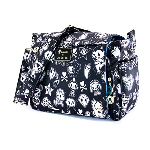 - Feature : Messenger style diaper bag with lots of pockets and versatility / (3) main pockets, (4) zippered pockets, a "mommy" pocket and a memory foam changing pad / Includes Teflon treated outer fabric, Agion anti-microbial protected linings and 3M Thinsulate in the insulated bottle pockets / The TokiDoki design The Kings Court is a black and white design with a bright blue lining and silver metal hardware / Comes with a 90-day limited warranty against manufacturing defects